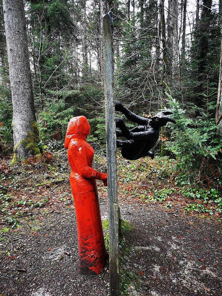 Im November, wenn die Blätter den Boden rostrot färben, die Bäume kahl und die Weiher wie aus der Zeit gefallen erscheinen, hat die Wanderung einen ganz besonderen Reiz. Auf dem Weg treffen wir auf einige Stationen des Freiämter Sagenweges. Die Sagen und die dazu passenden Skulpturen beflügeln die Fantasie.